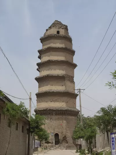 感应寺砖塔,又称西寺塔,位于曲沃县城与曲沃古城之间,曲沃县西环路西、乐昌二中南,是县级重点文物保护单位。感应寺砖塔始建于宋代乾道元年(公元1165年),元代大来自德七年(公元1303年)因地震塔身破裂为两半。
