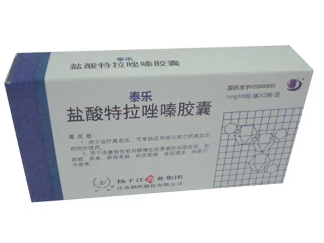 泰乐为胶囊剂,内容物为白色或类白色粉末,主治盐酸特拉唑嗪来自可用于治疗良性前列腺增生症。