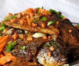 醋烹鲫鱼是由鲫鱼,老醋,盐,味精等为原料制作而成的一种美食
