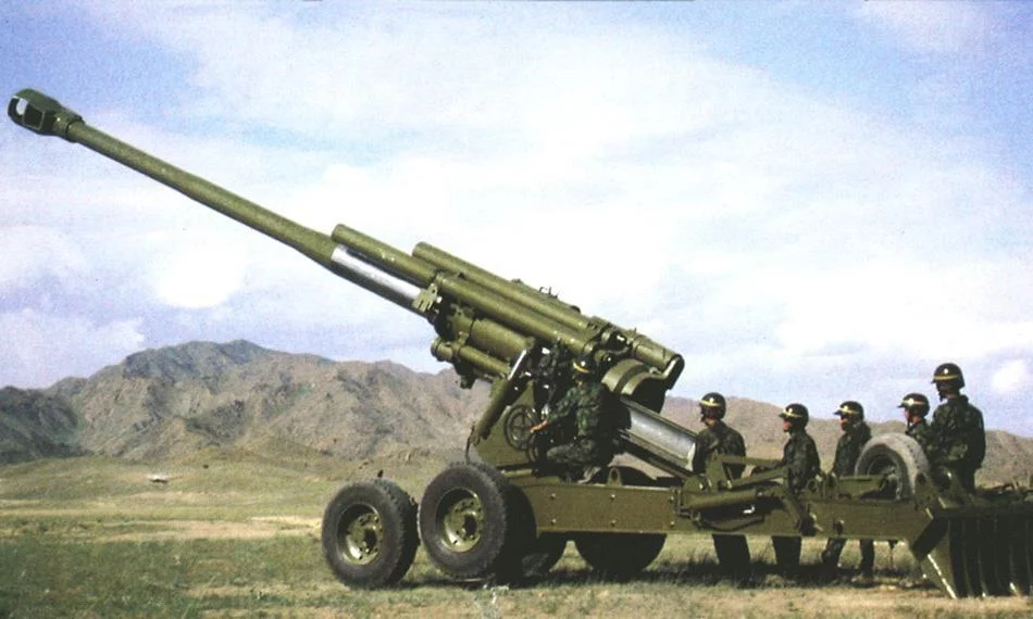 FGT-203毫米牵引火炮,是中国自行研制的口径最大的野战火炮,由中国北方工业公司研制。该系统主要供军级作战单位使用,射程远、威力大、精度高,可以配备多种特殊弹药,是远程周接例态晶段七场奏攻击的火力骨干力量。虽然该炮下马了,但其射程超过了美俄同类型门化船刚稳利派候火炮,被赋予"亚洲第一炮"的称号。