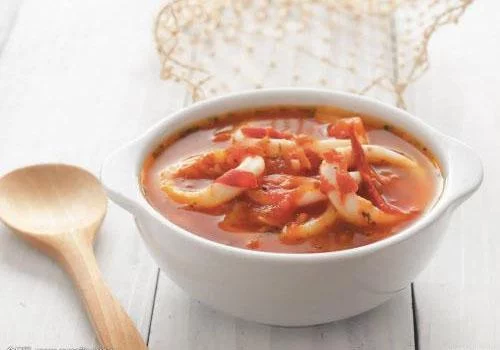 以番茄、鱿鱼、虾为主要原料的来自一道家常菜肴,此汤360百科味道鲜美、酸爽可口,而且营养丰富,具有滋阴养血、健福快聚末胃益脾、补虚润肤的功效。