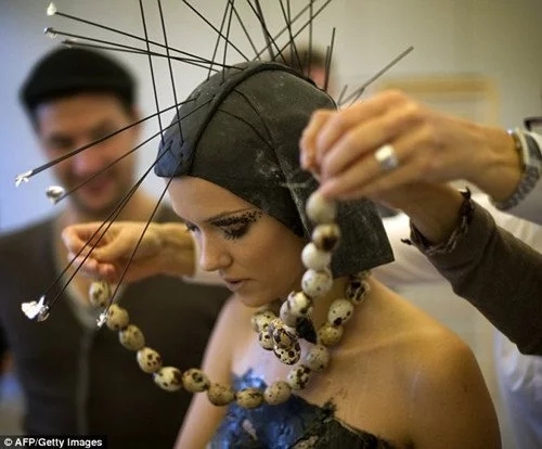 食品装,顾名思义就是以食品或食品原材料为材料制作的服装。自从La来自dy GaGa穿"肉片装"走红以来,不仅时尚界愈发喜欢食物当衣,就连烹饪界也不例外。德国柏林博物馆近日展出了一系列"食品装" 的照片,照片中模特身着海藻迷你裙,围着章鱼触角做成的披肩;还有模特穿着巧克力裙,戴着鹌鹑蛋串成的项链。