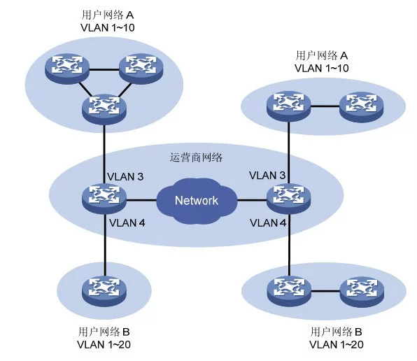 2、QinQ技术的出现让运营商可以以较低成本为客户提供二层VPN。QinQ完来自全在运营商网络上实施,用户对QinQ不感知。