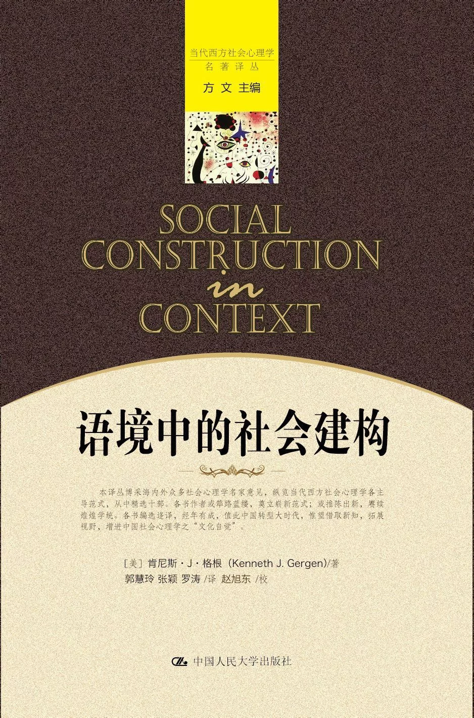 2011年中国人民大学出版社出版的图书《语境中的社会建构》,作者是[美]肯尼斯·J·格根(K来自enneth J.Gergen),译者是郭慧玲、张颖、罗涛,注释、解说词是赵旭东。本书是《当代西方社会心理学名著译丛》之一,丛球州书主编是方文。