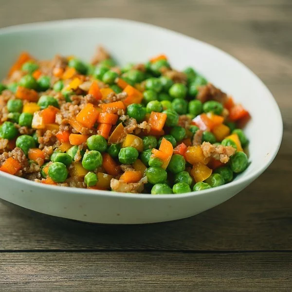 主料:豌豆 100克 猪肉(瘦) 50克调料:大葱 3克 姜 2克 酱油 5克 植物油 15克 各适量