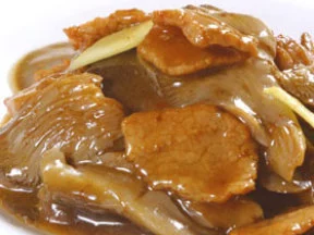 平菇炒牛肉烟原整毫茶是一道由平菇、牛肉等食材制成的美食。