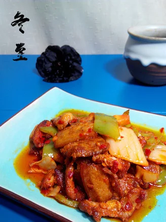 五花肉炒辣来自白菜是一道由五花肉、辣白菜等做成的美食。