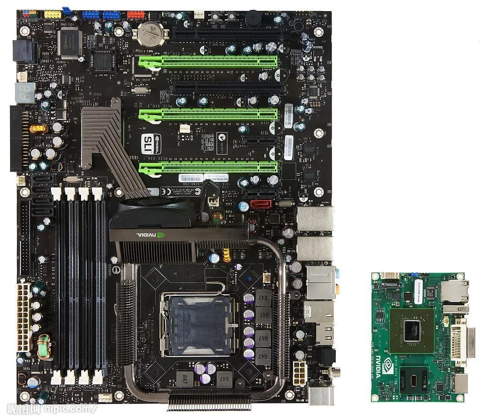在芯片组领域有些不得志的NVIDIA突然在上网本领域发力,文光液高调推出了"Ion"(离子)平台。我们能够见到的采用MCP79芯片组的离子平台采用了10层Pico ITX设计,支持单核心的Atom230和双核Atom330,支持单条SO-DIMM DDR3-800/1066/1333,集成千兆网卡以及支持DX10的图形核心,配备了HDMI、DVI、D-Sub接口。I/O方面比较丰富,具有 eSATA接口、6个USB编总接口,而且还支持7.1声道音频输出等。就规格来说相比Intel方面的