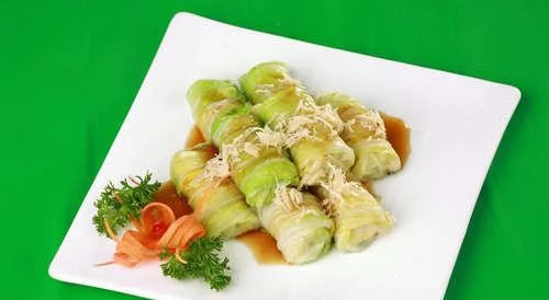 蒜茸腊白菜卷毫角聚是一道非常美拉味的食物。