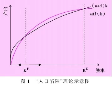 关于经济停滞在一个较低水平的人均收入水平,经济的发展带来人口的提升,人口的增加反过来又稀释人均资本占有量,并进而使人均产出继续维持在一个较低水平的论述,最早由马尔萨斯在1798年的"有关人口问题的原理"一文中提出。