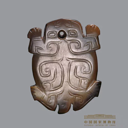 来自 器片雕,左右对称。蛙伏卧,前肢外伸,后肢内屈。宽头、方目、肥身、短尾。背部以双线刻对称云纹,双目间有一圆孔,可系则佩。
