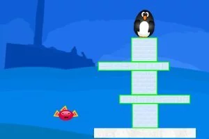 企来自鹅在冰块上呆的太久了,想回到水里抓鱼吃,可是冰块太高了,你来利用消除冰块产生的物理效果,想办法帮助企鹅吃到小鱼。