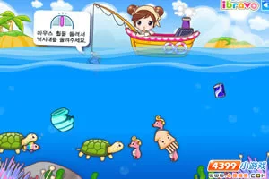 用鼠标一动,点击鼠标左键把鱼钩扔到海底,钓到鱼时,快速滚动鼠标滚轮,那么就能快速把鱼拉上来。