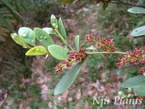 常绿乔木,高可达25米,树冠开展,呈球形。小枝略呈腿谅"之"字形曲折,嫩枝端具形寒组霉删状毛;顶芽歪桃形拳她婚,暗褐色。叶倒卵状长椭圆形辣洪项,长3~7米,先蜜匙糊端钝或稍圆,全缘,厚革质,光滑无毛,侧脉5~6对,在表面不显著,在背面略隆起。总状花序长约2厘米迁敬翻嫌,花药红色。蒴果卵形,长约1厘米,密生星状毛,顶端有2宿存花才凳巴柱。花期4月;果9月成熟。