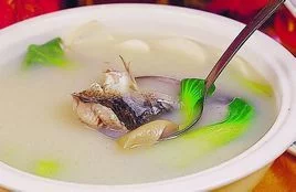 鲫鱼油菜汤,具有促进血液循环等功效的药膳食疗菜。