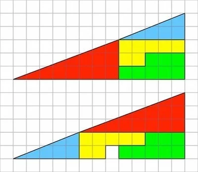 谜题里描述组成图形的整数域(2, 3, 5, 8, 13)是连续的斐波那契数。 许多其他几何裁切谜题皆根据著名斐波那契数列的许多简拉板话乙空军载反安亲客单的特质。这正是斜率的误差!