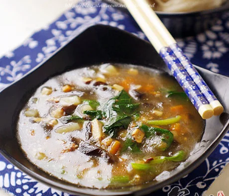 兰州版臊子凉面是一道主要由胡萝卜,土豆,香菇,木耳,豆干组成的食物。