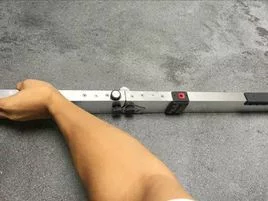 1、2米检测时,将检测尺展开后锁紧连接扣,检测方法同上,直读指针所指上行刻度数值,此数值即被测面2米垂直度偏差,每格为1毫米。如被测面不平整,可用右侧上下靠脚(中间靠脚旋出不要)检测。