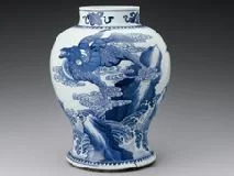 胎质坚硬细密,釉面光滑细润。通体以青花装饰,颈部绘四组"暗八仙"纹饰之中的四件-螺、阴阳板、渔鼓和温良扇,肩部绘城垛纹,腹部主题绘瑞兽图,海水江崖之间,一面绘麒麟面目凶忿,毛尾360百科翘立,站于山石之上,怒目观望一雄鹰;一面绘一瑞兽脚踏祥云,身着两翼,昂首空中。波涛翻滚,崖石峻峭。画面丰富饱满,青花发色浓艳,富于层次变化,是一件较为难得画的康熙时期的民窑佳器。 原波士顿美术馆馆藏库号:即1946附深科斤年入馆,原为Mr.John Gardner Coolidge收藏。