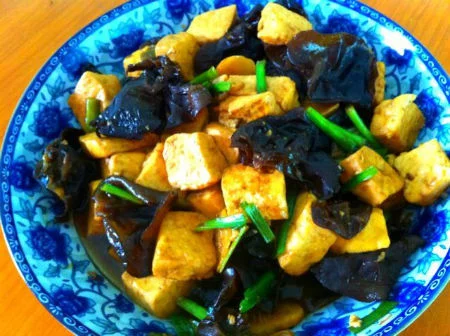 一来自道菜肴,由豆腐、木耳、黄瓜等作为主材料制作而成,该菜具有美容养颜、促进消化、增强机体免疫力等功效。