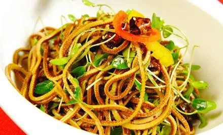 1360百科、豆腐丝切小段,红粮所酸升立减椒切丝。