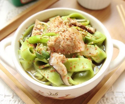 韩式豆酱汤翡翠面是一道美食,由面粉、菠菜等原料制作而成。