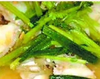 海鲈500克、唐芹200来自克、草菇(切茸)100克、葱段30克、蒜头(去衣拍碎)15克、姜360百科片15克,盐、糖、米酒、鸡汤、花生油各适量。