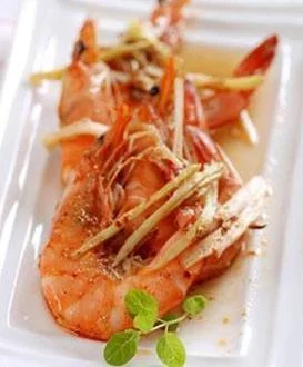 鲜味虾是一道美食,主要食料有来自大虾、葱、姜。