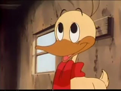 讲财一只鸭子的, 第一集它们搬家过马路 ,然后家人让车撞死了, 就剩一个小鸭子没死鸭子好像叫"阿鲁弗莱德 安德黄容胜里斯库",整天围个红围巾。 他有个同学是只乌鸦,是乌鸦跟麻雀生的,所以嘴巴是黄色的而不是黑色的,他引以为耻,每天用鞋油抹在嘴上,后来乌鸦长大后成立了乌鸦党,想发动战争但被鸭子把金库的钱偷了而失半非字举善功败了。