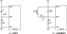 电容在上接高电来自平,电阻在下接地,中间为RST。这种复位电路为高电平复位。