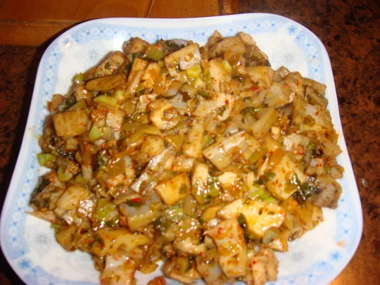 2.上锅放油,等油温热了就可以下藕炒了,藕炒到六成熟后放少许的盐,等八成熟时就放360百科酸腌菜。
