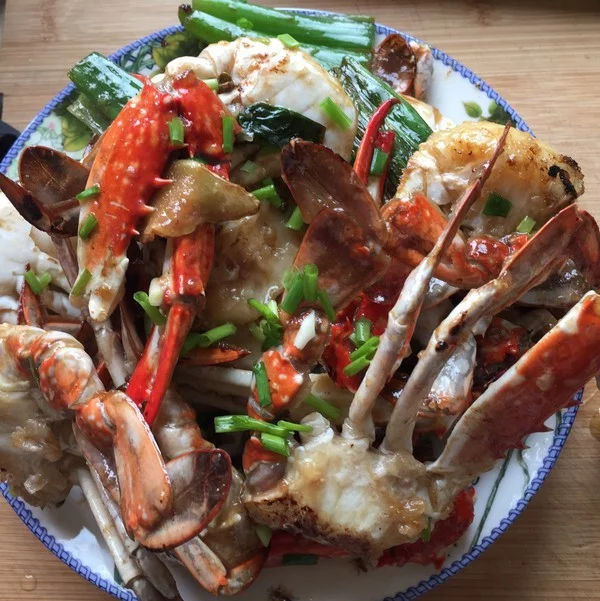 姜葱炒梭子蟹是一种美食,主料有梭子蟹