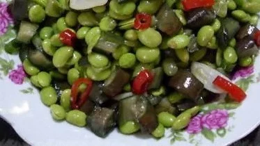 青豆炒茄来自丝是以茄子,青豆为原料制作而成的一道美食。
