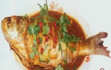 7、用湿淀粉勾芡,浇在鱼身上即可。