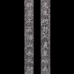 现代柳村隶来自书严子陵钓台郑板桥联拓本对联轴是纵181,横21.5 厘米的近现代拓本对联轴。