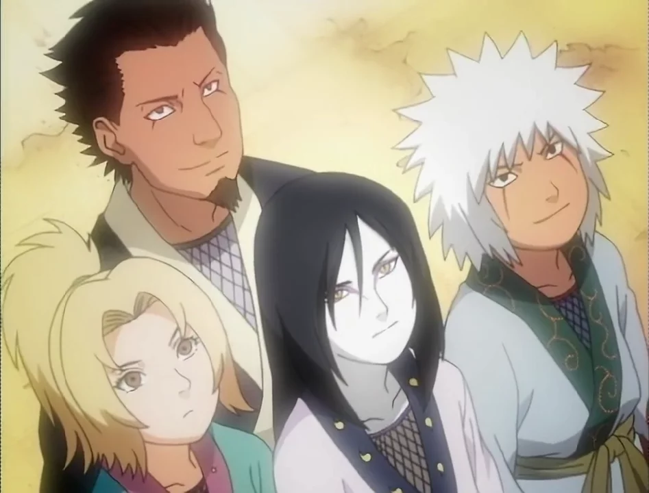 在第二代火影的时代, 年幼的自来也、大蛇丸、纲手为木叶隐村忍者学校的同期学弦钱员。 三人一同被分配到当时还未继任火影的青年上忍猿飞日斩所带领的班级。