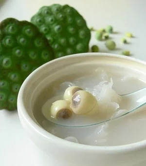 由鸡蛋,莲子为主料,西谷米,牛奶为辅料,姜,冰糖为调料所熬制的莲子汤。
