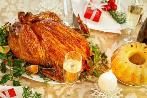 西式圣诞火鸡是由野米、蘑菇、西芹、红萝卜、雪藏火鸡为原料制成的一道菜品。