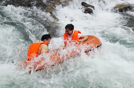 景区主要项目有漂流、滑草。漂流全程8公里,激流险滩和平整如镜的湖面交错布置,橡皮艇时而在急流中飘忽不定,时而在湖面上随风飘荡。水道时而狭窄,时而开阔,橡皮艇观顺流而下,避巨石、绕暗礁、冲激流,溅一江绿水,洒一路欢笑。