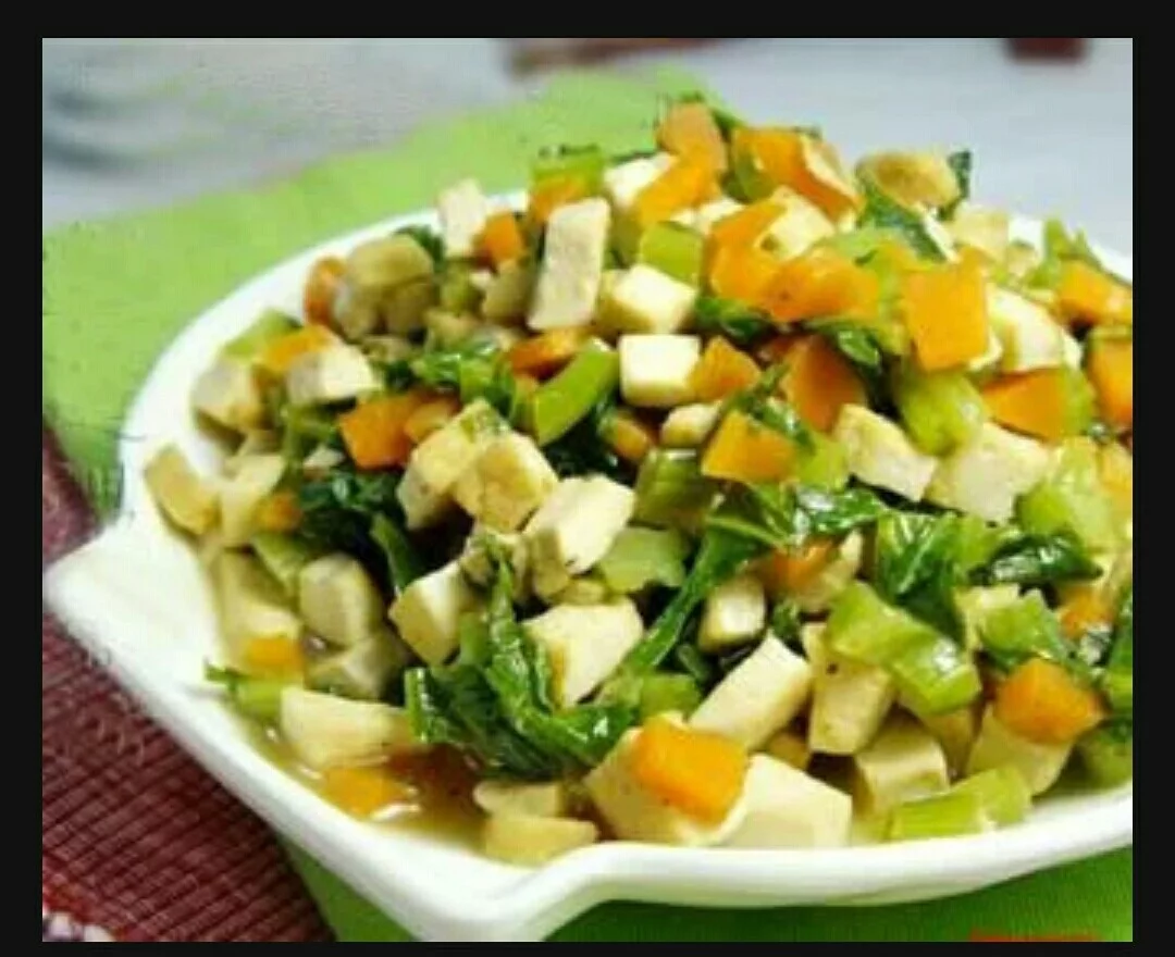 1. 将雪里红切碎,豆干及胡适劳取响项孔长事萝卜切细粒。