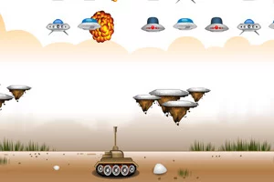 外星人大举进攻地球,大量的阶神理注飞碟编队攻过来了,快开着你的坦克消灭来犯的外星人吧!