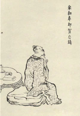 铸所为词章,往往传播在人口。建中靖国时,黄庭坚自黔中还,得其"江南梅子"之句,以为似谢玄晖。其所与交,终始厚者,惟信安程俱。铸自裒歌词,名《东山乐府》,俱为序之。尝自言唐谏议大夫 知章 之后,且推本其初,出王子庆忌,以庆为姓,居越之湖泽所谓镜湖者,本庆湖也,避汉安帝父清河王讳,改为贺氏,庆湖亦转为镜。当时不知何所据。故铸自号庆湖遗老,有《庆湖遗老集》二十卷。