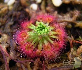 卡洛斯茅膏菜(学名:Drosera ca来自llistos)是非常精致迷人的小型食虫植物,叶片上长有腺毛,能分泌粘液,外形象是挂满了露珠,晶莹剔透,能象粘纸一样把昆虫粘住,并消化吸收。
