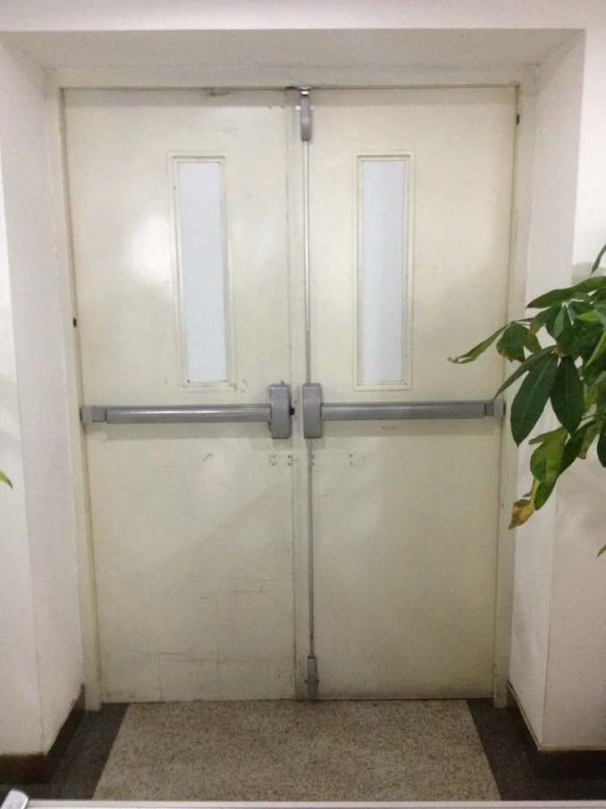 ③门内:推杠式逃生锁体;门外:带钥匙保险锁头。