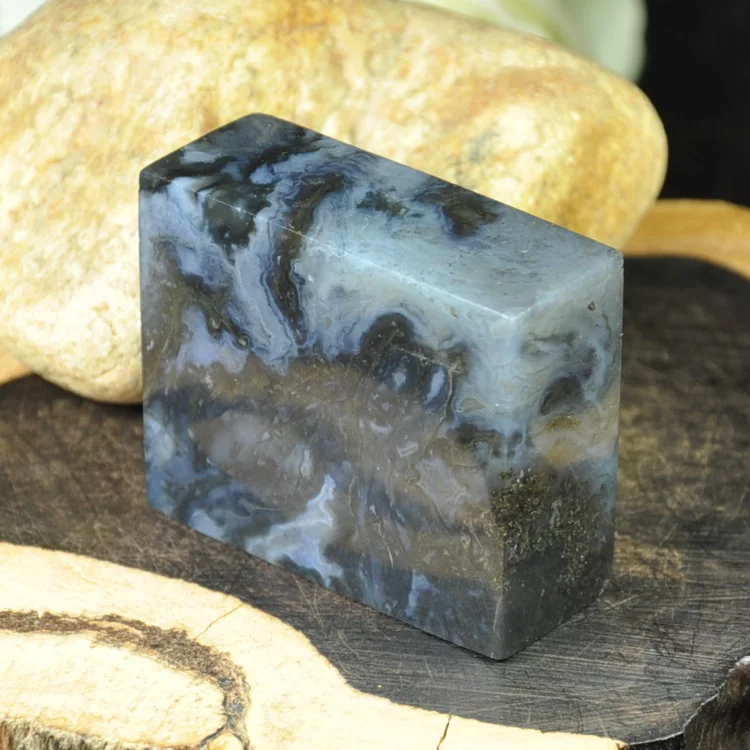 黑玛瑙来自英文名称black agate,主要因玛瑙中含有较多有机质引起。纯黑的整块玛瑙在自然界极少见,多为因有机质含量不均而呈现出深浅不同的条带。