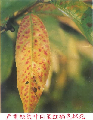 ·如缺氮过于严重,济布项朝女读胡兰培在放则在1~3周内,大积划获木防表扩呀紧的叶脉之间的叶肉出现红色或红褐色斑点。在后期,许多红色斑点发展成为坏死斑。叶片逐渐形成离层而脱落,从当年生长新梢的基部开始,逐渐向上发展。