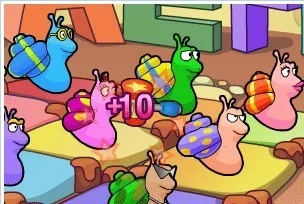 员用锤子在醒睡觉的蜗牛,到数来自量后,进入下一关。