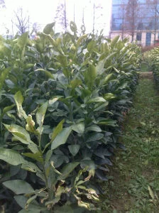 为常绿灌木或小乔木,高达10-15 米;枝灰色或灰褐色,有凸起的小瘤状皮孔,无毛或有时稍被褐色簇状毛。