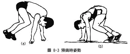 各就位:双臂支撑线后沿,两脚踏紧抵足板,