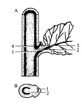 由茎的维管柱分出,经过皮层通往分枝的一段或几段维管束叫枝迹。
